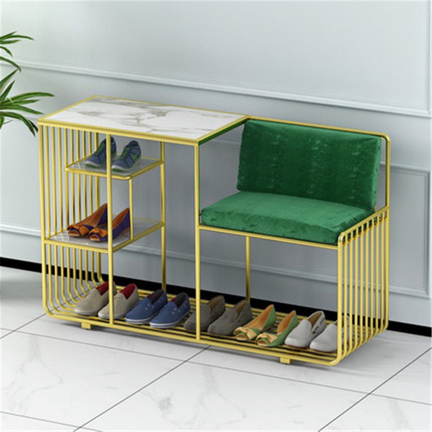 A stylish entryway bench with cushioned seat and shoe storage underneath. Perfect for hallways, bedrooms or entryways to sit and store footwear neatly.