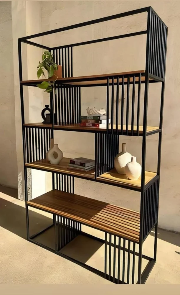 Elevate your home or office space with this modern loft-style rack cabinet, designed to combine industrial charm with contemporary elegance. Featuring a sturdy metal frame and warm wooden panels, it offers both durability and a stylish aesthetic.