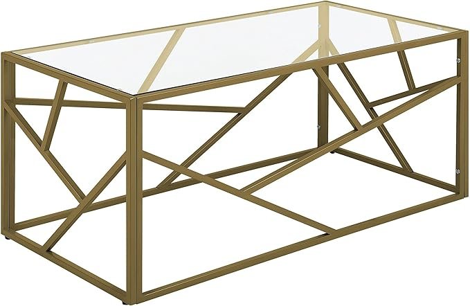 Orland Glass Coffee Table with Metal Frame Golden 50 x 100 cm Glamour Coffee Table Rectangular Living Room Table